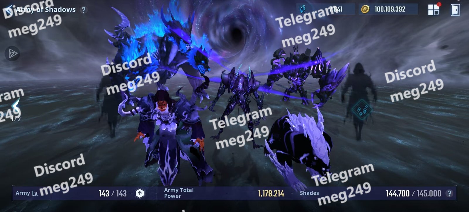 • Army of Shadows: Lv143/143, 1,178,214 power, 144,700/145,000 shades