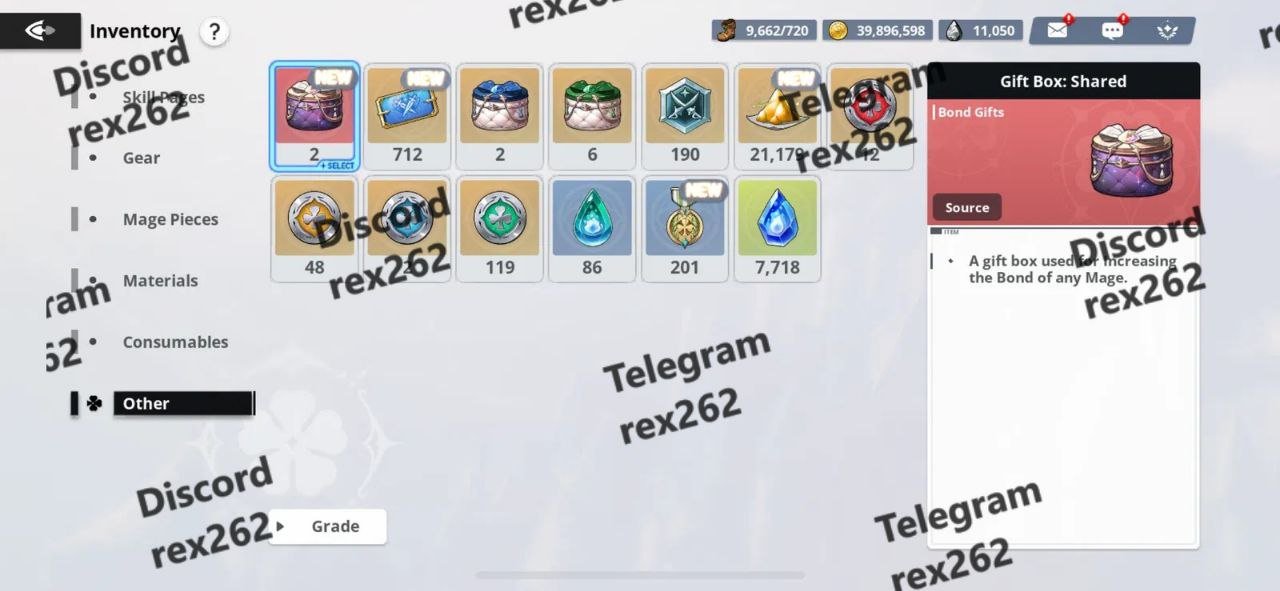 Materials: Various SSR and SSSR enhancement materials, skill books, and versatile mage pieces