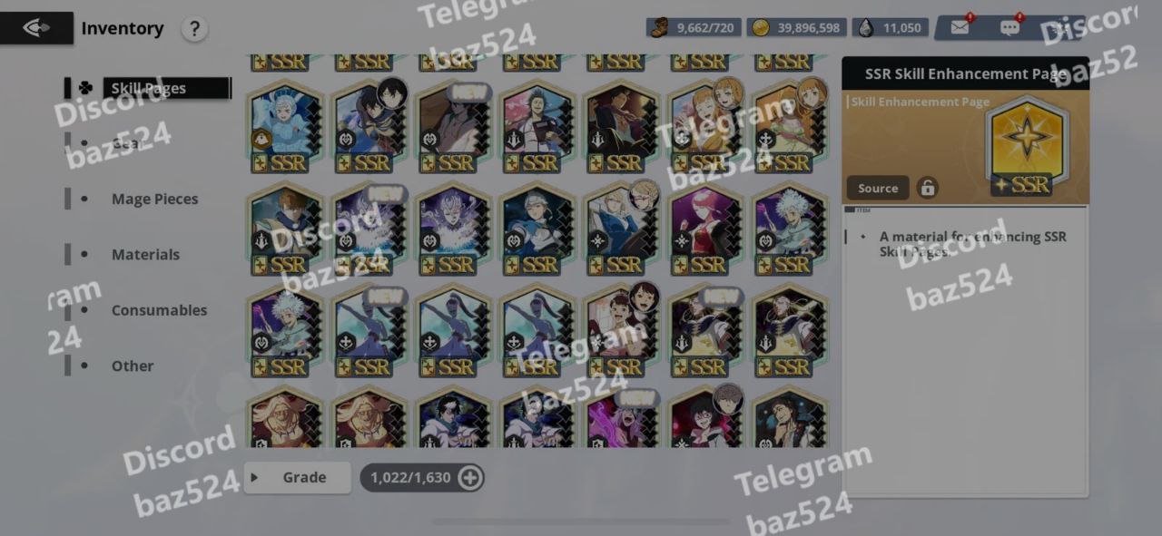 Materials: Various SSR and SSSR enhancement materials, skill books, and versatile mage pieces