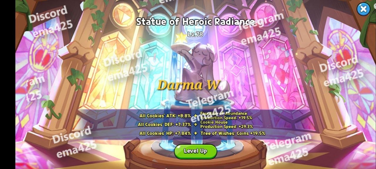 Statue of Heroic Radiance Lv 78: All cookies receive significant stat boosts from the Heroic Radiance and additional bonuses like Tree of Wishes coin boosts.