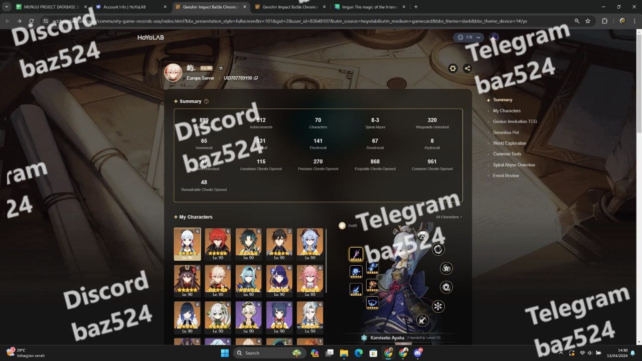 Yelan C5, Eula C6, Neuvilette C6, Nahida C6, Yaemiko C6, Raiden C6, Xiao C6, Ayaka C6 etc