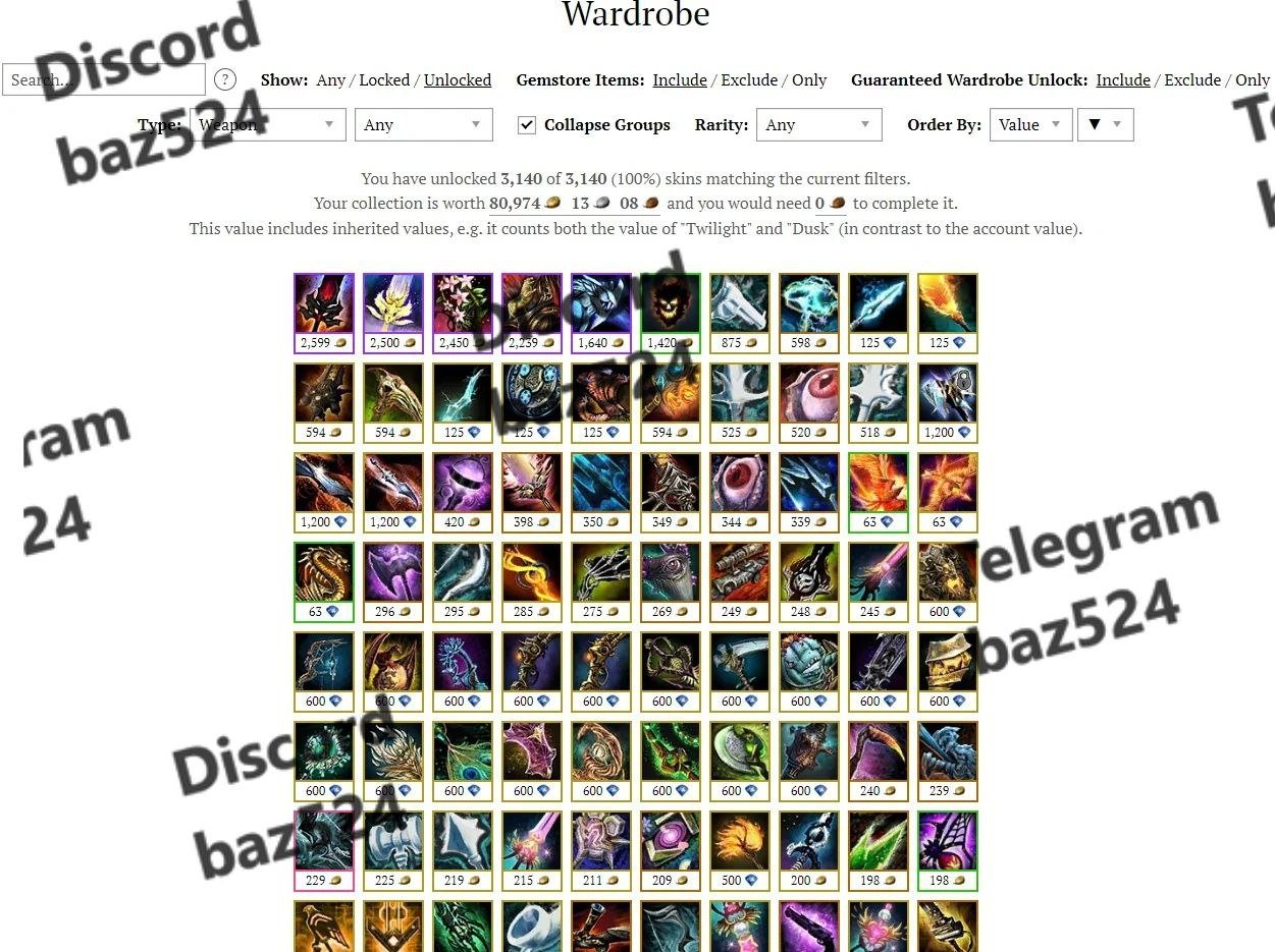 1500 material storage capacity -100K+ gold worth in wardrobe skins and minis (was a personal project of mine to having every skin worth up to 40g to make the wardrobe unlock vouchers worthwhile) -All dyes (including permafrost)