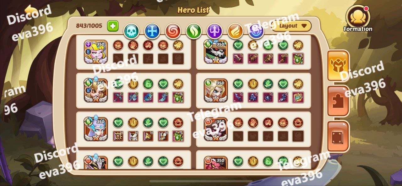 Top Heroes: Max-level Transcendence heroes including Sword Flash, Vesa, Asmodel Fully maxed factions: