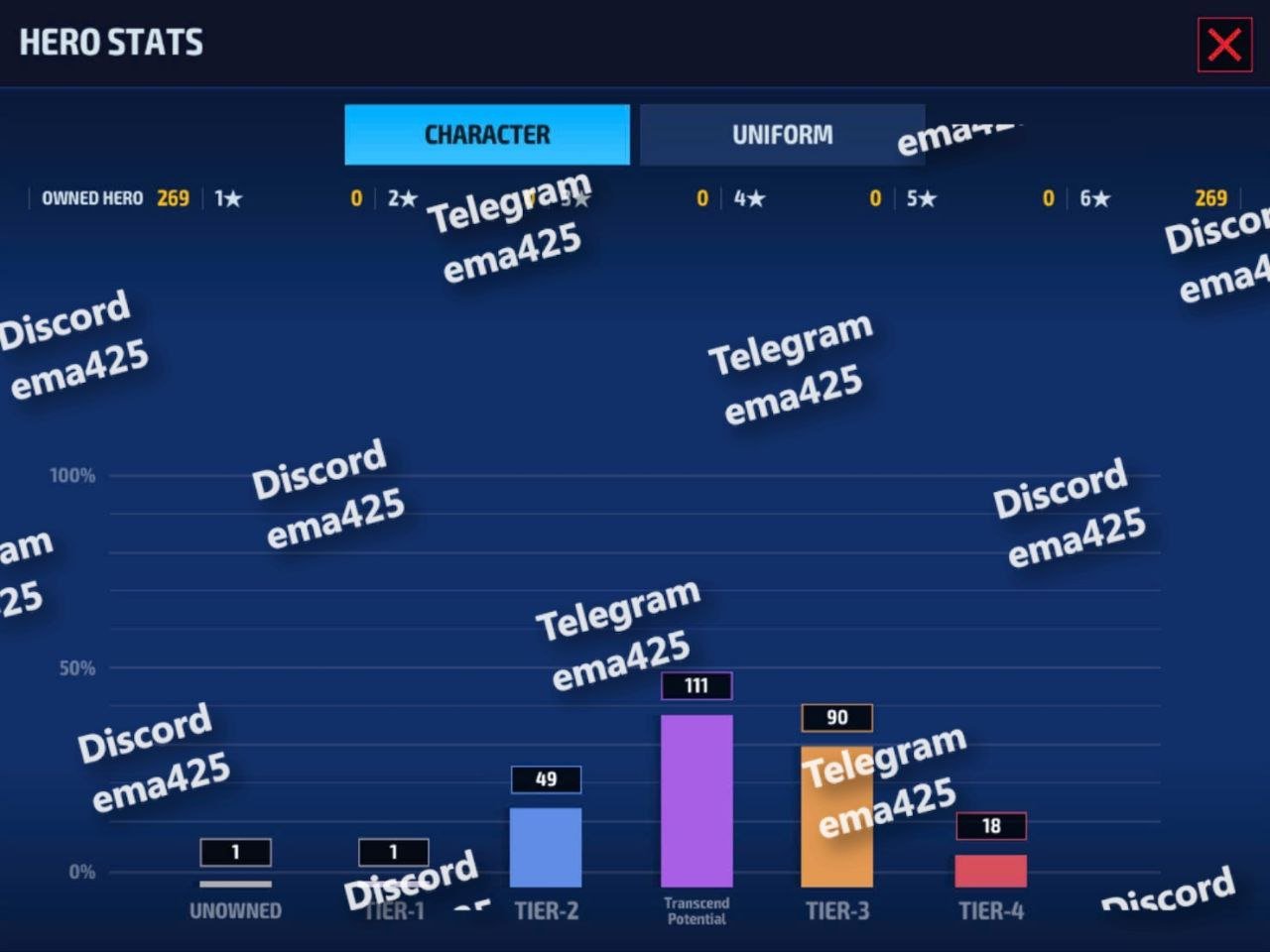 269/270 characters unlocked, including Tier 4 Jean Grey, Silver Surfer, and Sentry.
