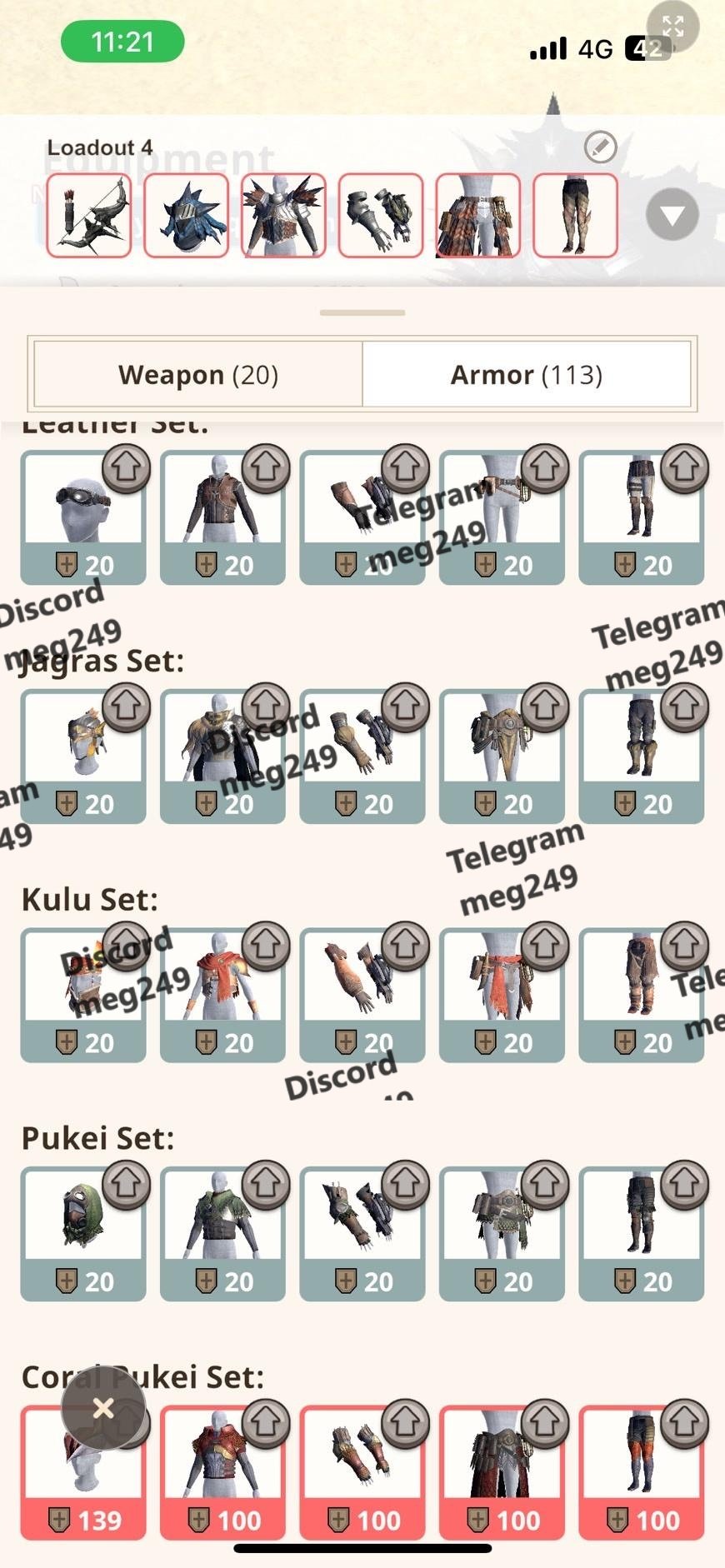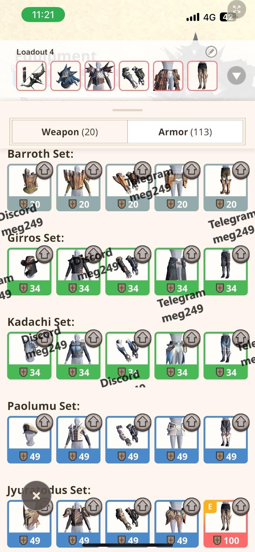 • Full Bow & Long Sword sets (all G6+)