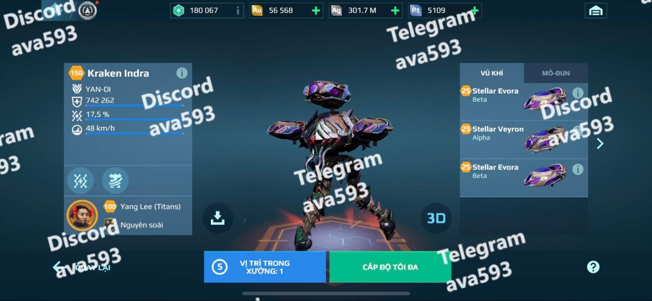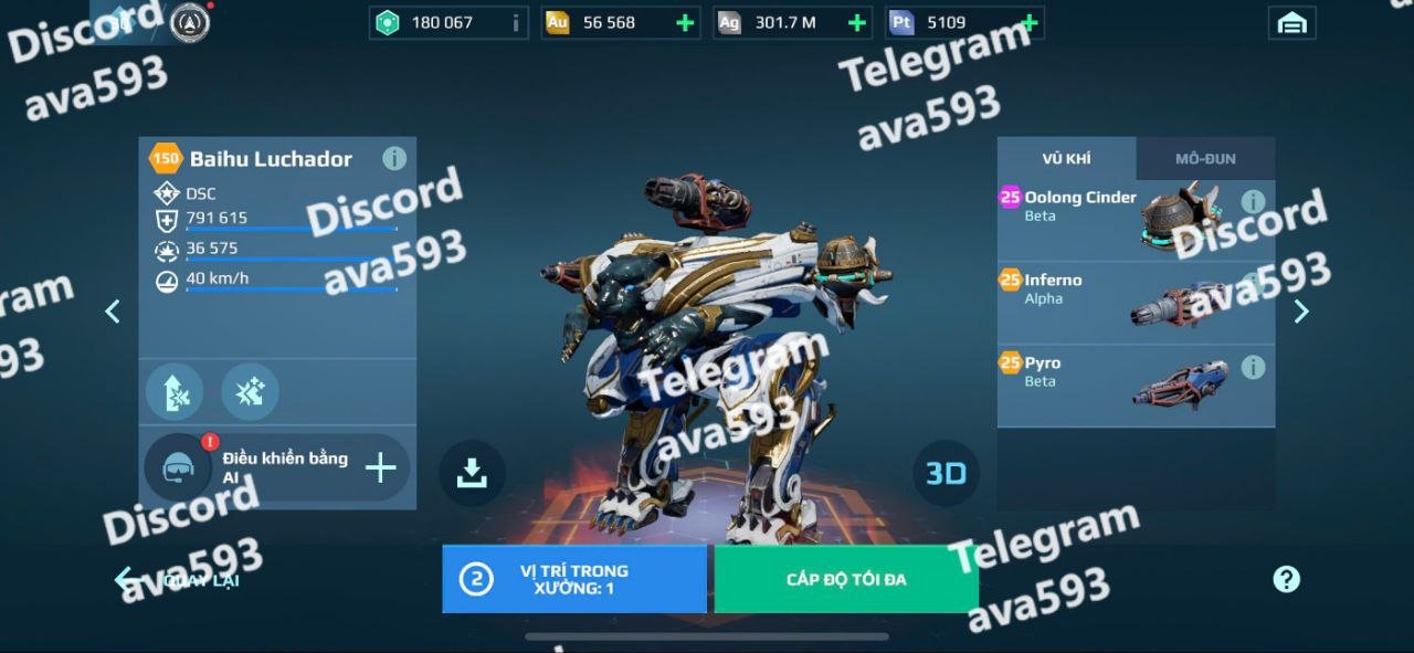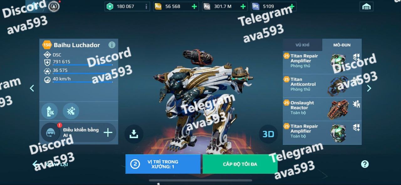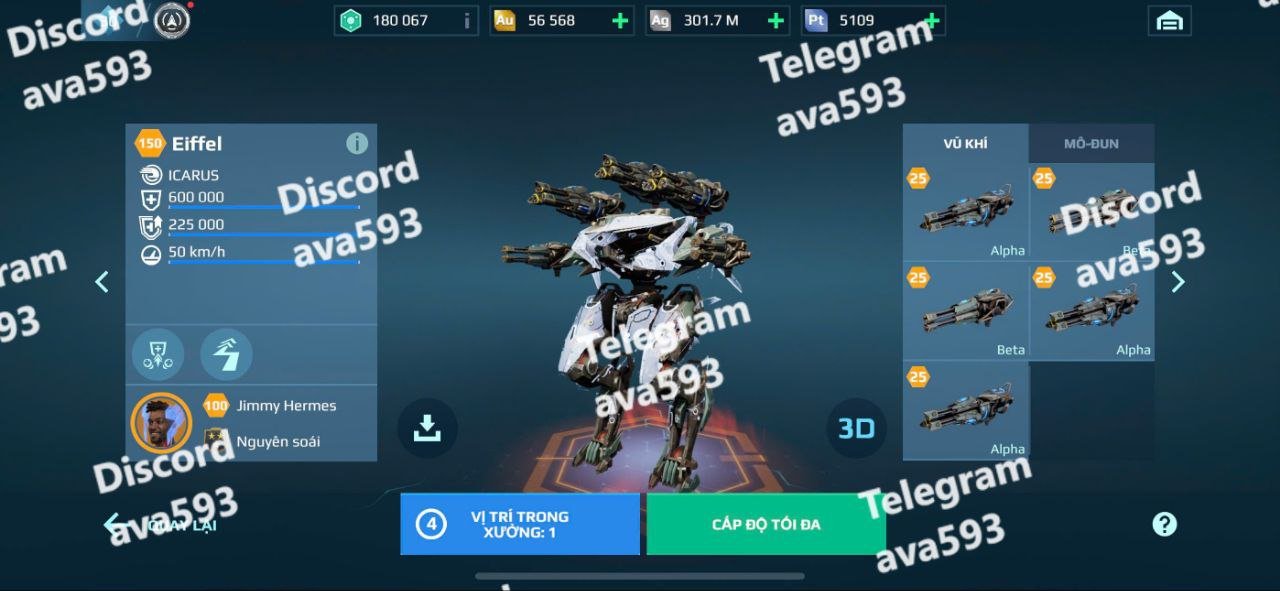 High-level damage and defense modules equipped across all robots.