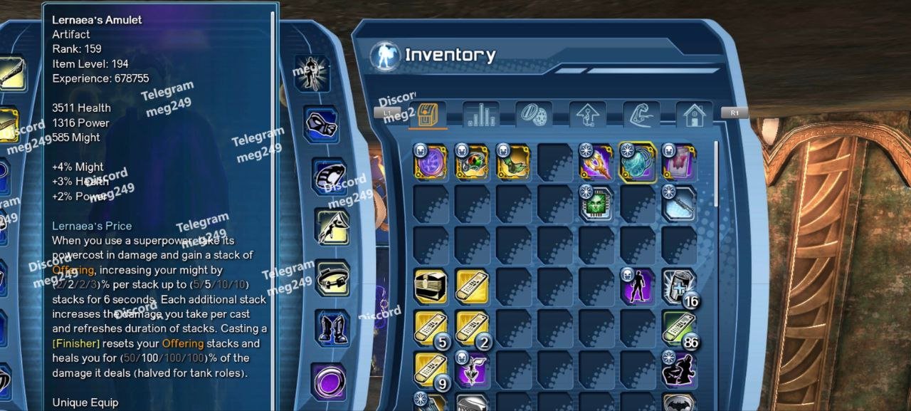 – Lernea’s Amulet, Solar Amplifier, EoG, Scrap of Soul Cloak, Gemini, etc.